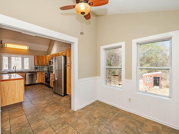 Step inside to discover a spacious layout featuring a first-floor bedroom and a full bathroom, ideal for guests or one-level living. The large kitchen boasts cathedral ceilings, creating a bright and airy space that's open to the dining area, a perfect spot for family gatherings. Enjoy the cozy living room, designed for relaxation.