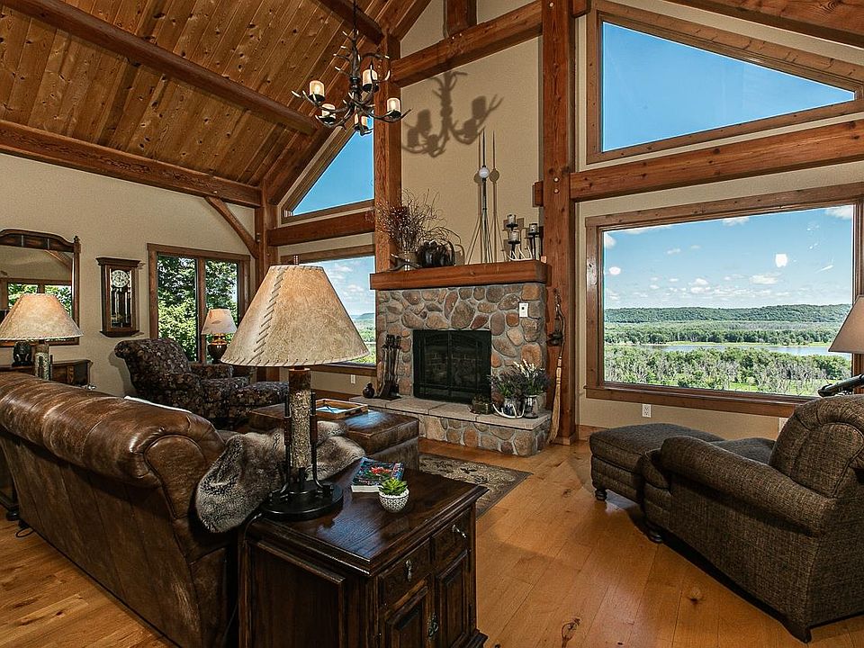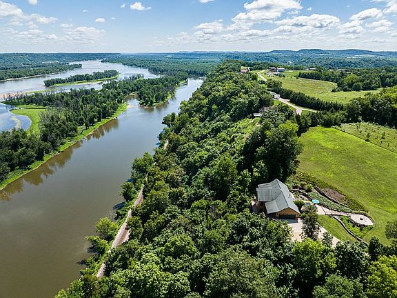 BREATHTAKING MISSISSIPPI RIVER VIEWS! Don't let the humble exterior of this home fool you. Inside, it is stunningly beautiful, warm and inviting. It feels like home. The wow factor of the Mississippi River view takes your breath away from the moment you approach the front door. It continues into the living room where large windows flank the fireplace, allowing a spectacular front seat view of the Bald Eagle nesting areas and Million Dollar Beach below. Every inch of this custom built 3BR/2.5BA hand pegged timber frame hybrid home has been purposefully planned for functionality, views and efficiency. From the Douglas Fir timbers brought in from Washington state, knotty alder cabinetry, trim and floors, the Anderson Low E windows, Kohler fixtures and dual zoned HVAC, nothing has been over-looked. Even the 3ft wide doors and zero step entry were planned for aging comfortably in place. The exterior of the home includes maintenance free decking, smart siding, extensive landscaping with limestone retaining walls, native grasses and perennials. Beautiful Acreages with the timeless style of timber frame hybrid construction and a view like this are a rare find. Call for a showing today!