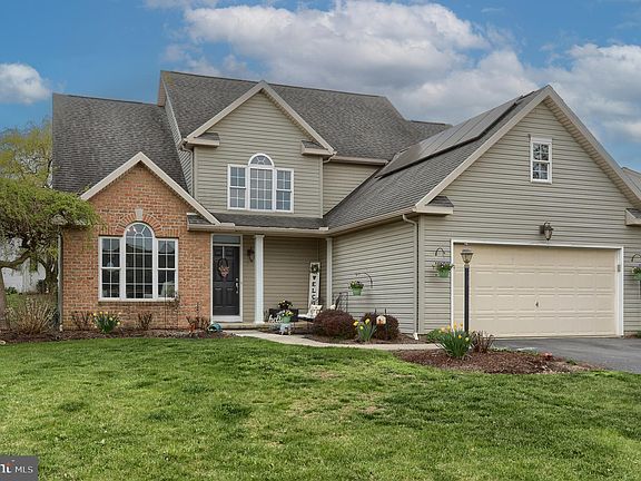 Welcome home to this beautiful, well-maintained property located in Palmyra School district. This home is one of two models like this in the development with no HOA! Upon entering the home, you will notice the large two-story foyer with wrap-around staircase, library with palladium windows, separate dining room and first floor bedroom with full bathroom. Additionally, you will enter the open kitchen with an island, freshly painted cabinets with updated hardware, granite countertops, gas cooking and stainless-steel appliances. Rounding out the first floor is a family room with an updated gas fireplace, an updated panty, breakfast nook and access to the two-car garage. Moving to the second floor you will enjoy an open area that goes from bedroom to bedroom. The primary suite is spacious with a recently updated bathroom, which includes soaking tub, large, tiled shower, double vanity, large walk-in closet, and laundry tucked behind the sliding barn doors. The two additional bedrooms are adjoined with a jack-and-jill bathroom with separate sink and shower/toilet area. Downstairs in the basement you will find a large family room with a workout area, an office and large storage area. There is even additional storage tucked under the stairs. In the backyard, you will enjoy a large patio with space to grill and relax under the pergola. Additional updates in this home include new hot water heater in 2022, furnace and ac unit replaced in 2021, matching luxury plank vinyl throughout the entire home, updated lighting throughout, new tile backsplash and granite countertops in the kitchen, updated fireplace, new sinks in the bathrooms, patio door, solar panels, and so much more. This is a home you will not want to slip by.