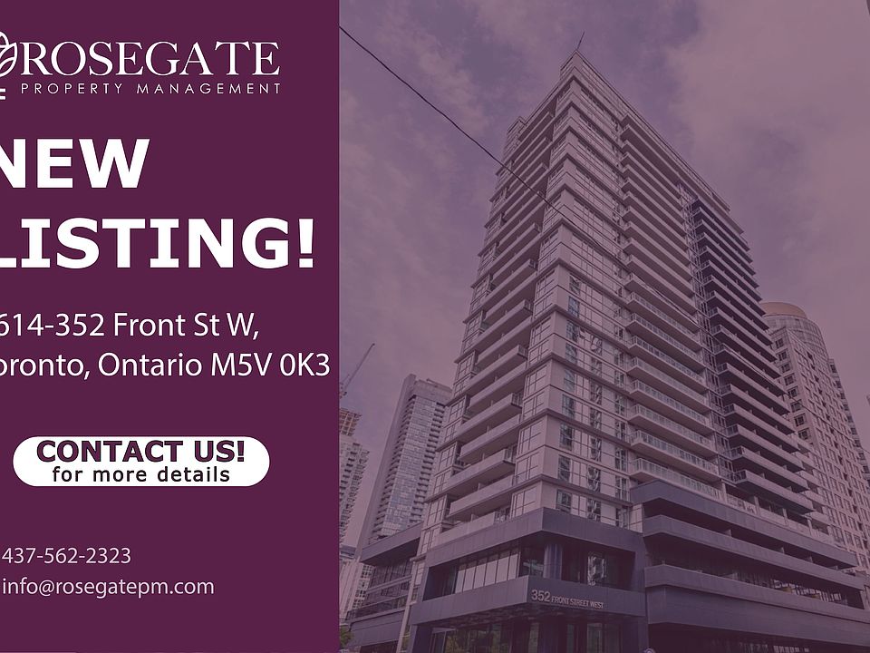 Modern 2-Bedroom, 2-Bathroom Condo in Downtown Toronto 850 Sq Ft Welcome to 1614-352 Front St W, a stylish 2-bedroom, 2-bathroom condo offering 850 square feet of modern living space in the heart of downtown Toronto. Perfect for professionals, couples, or small families, this unit combines convenience, comfort, and contemporary design in one of the city's most vibrant neighborhoods.The open-concept layout features a bright living and dining area, a modern kitchen with stainless steel appliances and ample cabinetry, and two spacious bedrooms. Both bathrooms are sleek and well-appointed, and large windows throughout the unit allow for plenty of natural light.Located steps from transit, restaurants, shops, and entertainment, this condo offers unmatched accessibility to everything Toronto has to offer. Don't miss the opportunity to make this downtown gem your next homeschedule a viewing today.