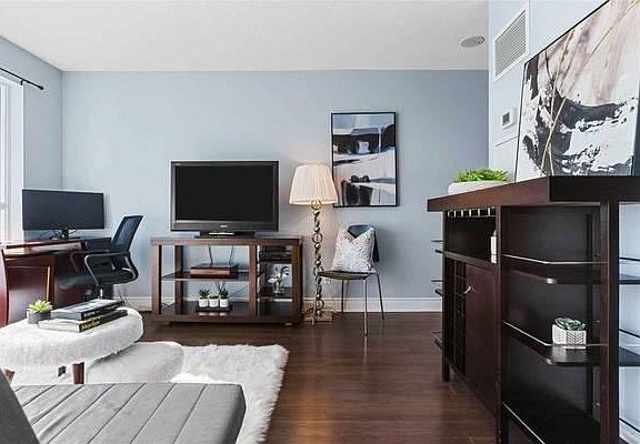 The Address is: 352 Front St W, Toronto, ON M5V 0K3, Canada Unit will be professionally deep cleaned prior to new occupancy Furnished or unfurnished suite can be accommodated - 9th Floor, Modern, bright, and well maintained one bedroom condo with balcony and storage in beautiful Waterfront Communities (Front & Spadina) - Largest 1Br plan in the building (586 sqft + 85 sqft balcony), Open Concept Living/Dining/Sleek Kitchen w/ Dark Espresso Cabinets, 9ft Ceil - Steps away from the public transportation (100 Transit Score, 96 Walk Score), a large variety of business and shopping centres, as well as all downtown Toronto! Walking distance to: * CN Tower * Prime Entertainment district * Rogers Center * Financial District * King & Queen W Shops & Restaurants The suite has been maintained by original owner and kept to high standards. It is a very secure building that includes a full amenity room, fitness room, concierge, guest suites, party/meeting room and lounge W/rooftop Terrace/Cabana/Bbqs. The suite includes: - Water, heat and natural gas - Hardwood floors in all rooms - Granite countertops - Large bathroom with a large bath tub - Large bedroom closet - Newly painted walls - Newly refinished tiles and floors - Ensuite laundry - Balcony - Stainless steel appliances, (fridge, stove, microwave, dishwasher) - Large wall-to-wall south facing windows - Queen bed and new furniture - Storage locker - No parking space All interested applicants must provide 2 references. Move In on 1st of April Staging decors are not included. Pets are OK. No smokers allowed. Subletting or Airbnb not allowed.