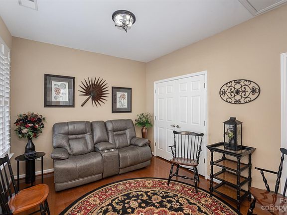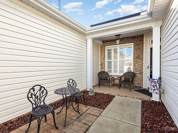 Located in the heart of Fort Mill! Original owners have meticulously maintained this home! Lots of community amenities w/ small community feel! 12000 HSF Clubhouse includes: Fitness Center, Hobby Rooms, Library, Billiard Room, outdoor W/Pool, Spa/hot tub, Tennis Court, Pickle-Ball, Golf Practice Net, Shuffleboard, & Bocce Ball. Located close to Parks, Shopping, 3 Golf Courses & Ann Springs Green-Way. Open floor plan! Kitchen includes lots of cabinet space, Corian countertops, tile backsplash, Plantation shutters! Non-slip flooring in garage along w/ lots of storage! Newer light fixtures and 3 ceiling fans, high quality storm doors in front & back, Built-in cabinets in family room! Primary Bedroom features a luxury bathroom suite stand-up shower & dual sink vanity, glass enclosed shower, and walk-in closet. The 2nd bedroom is being used as an at-home office/sitting room. Backs up to trees, titled patio and awning with remote! In-ground irrigation and water filtration system throughout!