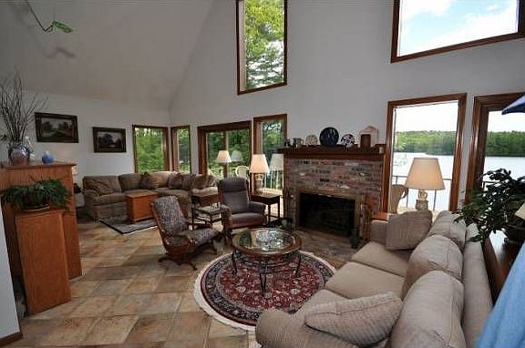Cathedral Ceiling contemporary Cape located at the end of a private road with 285 feet of waterfront on Mendums Pond (253 acres pond). The view from the deck is an unmatched pristine scene of two wooded islands and shoreline of a bird sanctuary. Enjoy the outdoors from the beach, dock, swim float, brick patios and gardens, orchard, flower gardens, equipment barn, Wood Brook running through a gardening area and screened in Gazebo for evenings of enjoyment. Step inside to a custom built home offering breathtaking views of the pond , 3 bedrooms plus a sleeping loft, 2 full baths. with open concept floor plan great for entertaining. Home sits on 1.08 acres.