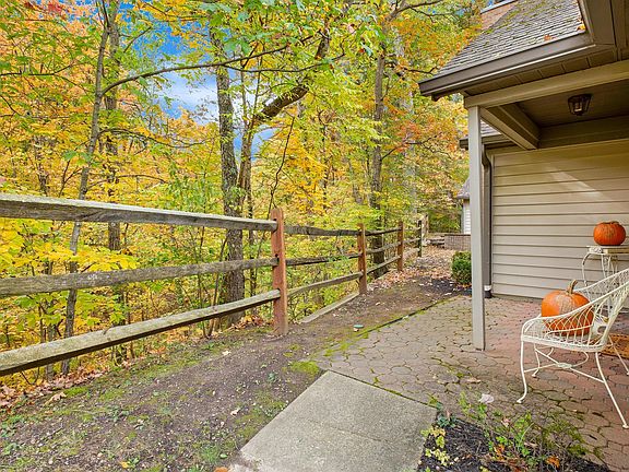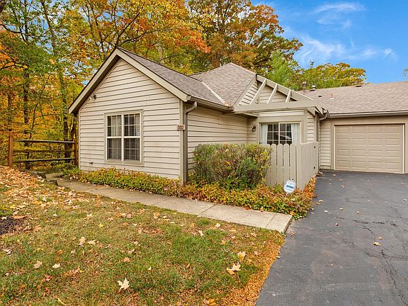 You're going to love this quiet, wooded condo next to the ravine in this gated community. Whether you're watching the leaves change through the tall living room windows as you lounge by the fireplace, or you're sitting on the patio with a drink, listening to the water run in the ravine, you'll feel relaxed by nature all around you. This end unit condo features two nice sized bedrooms, each with their own connected bathroom, a large living room and dining area, and plenty of space in the kitchen. If you don't feel like cooking, restaurants and shopping are just minutes away. Close to everything and simultaneously very private, this special condo won't last long. Schedule your showing today.
