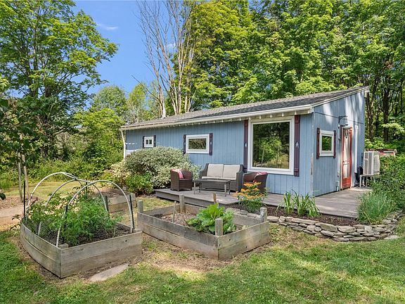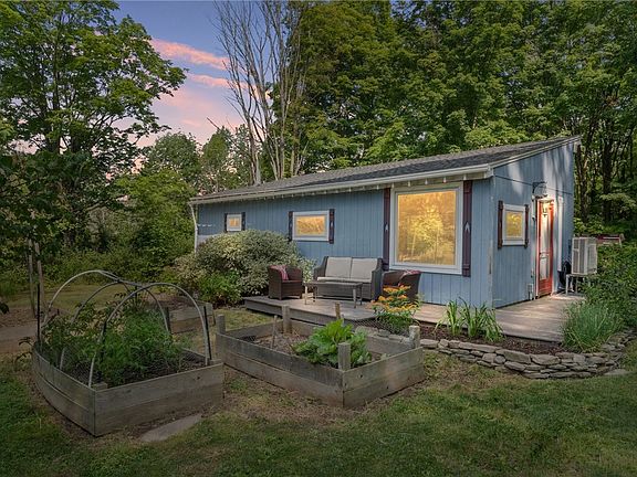 Simplistic living in this one bedroom home located a short drive to Cornell, Ithaca, Greek Peak, TC3 & SUNY Cortland. This alluring property emanates a feeling of peace and ease. The exterior offers two decks, a sauna, chicken coop, 220 outlet for EV vehicles, and a fully fenced yard, which is perfect for pets and gardening. Trees here are abundant with pear, apple, and maple that can be tapped for syrup. You will also find concord grapes, elderberries, and raised garden beds. The interior offers everything you need with large windows, hardwood floors, open concept living space, cozy loft, updated bathroom, and a new efficient heating system to keep you warm all winter and cool in the summer.