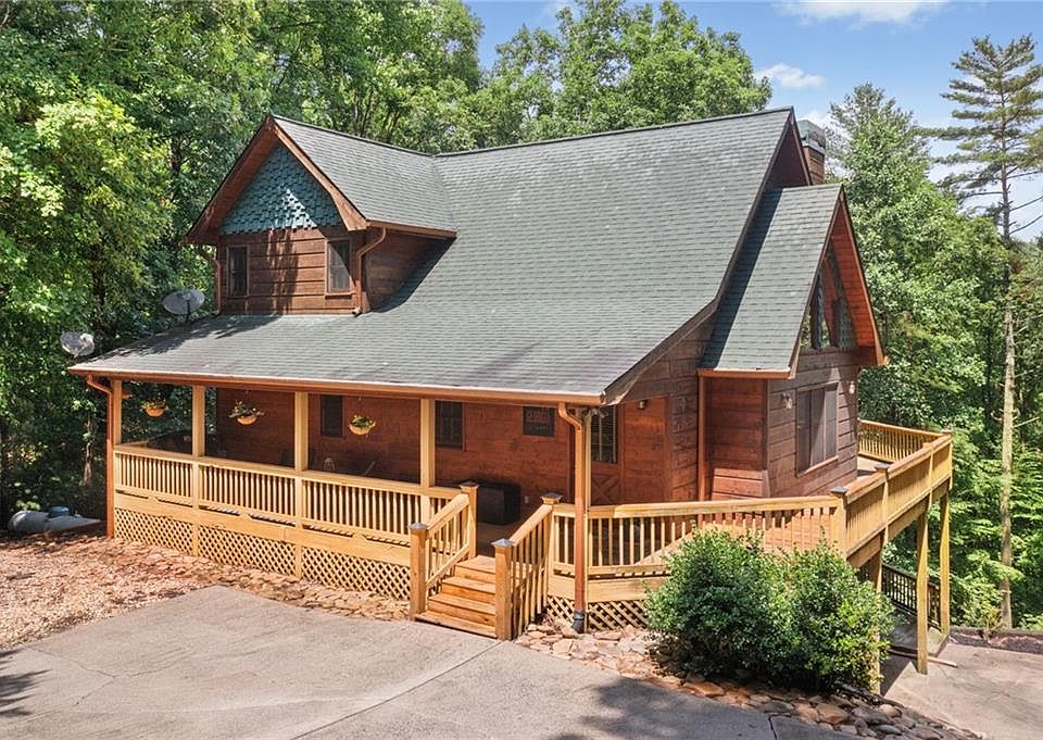 Rustic Mountain Charm Awaits! Tucked away on two private, wooded lots spanning 1.73 acres, this cozy cabin offers private seclusion with no visible neighbors. Step inside this beautiful home to discover open-concept living at its finest, featuring a stacked stone fireplace, cathedral ceilings, and an all-wood interior, perfectly complemented by oversized windows and custom blinds. The gourmet kitchen is a culinary dream, fully equipped with granite counters, a stone accent island, pantry, and a spacious dining room/sunroom. The stunning master suite boasts a palladium window, separate Jacuzzi tub, and walk-in shower, offering the ultimate in relaxation. This beautiful home also features a recently finished basement, whole-house water filtration system and generator, alarm system, drive-under garage, guest bathroom Jacuzzi, and 3 levels of covered porches, perfect for soaking in the breathtaking seasonal mountain views. Located in a picturesque mountain community with all-paved roads, enjoy walkable access to the community area, river, and nearby Whitepath golf course. With the National Forest nearby, hiking, biking, and vibrant seasonal colors are at your doorstep. Conveniently located off of Highway 515, there is easy access to Ellijay, Blue Ridge, nearby wineries and apple orchards. Don't miss out on this beautiful tranquil retreat, offering the perfect blend of rustic charm and modern comfort!