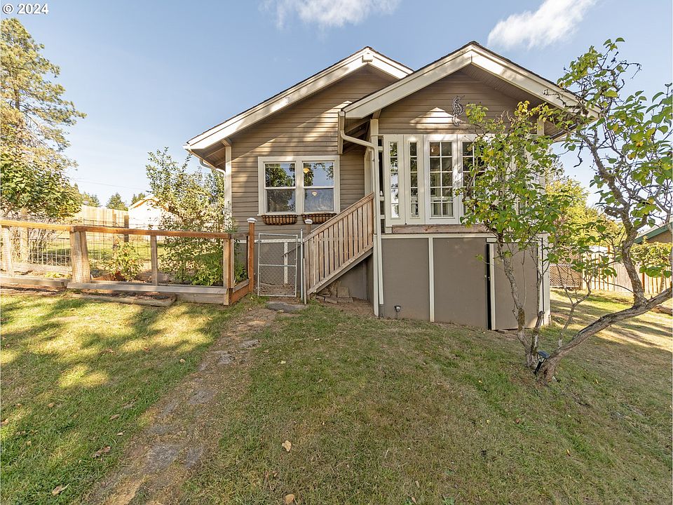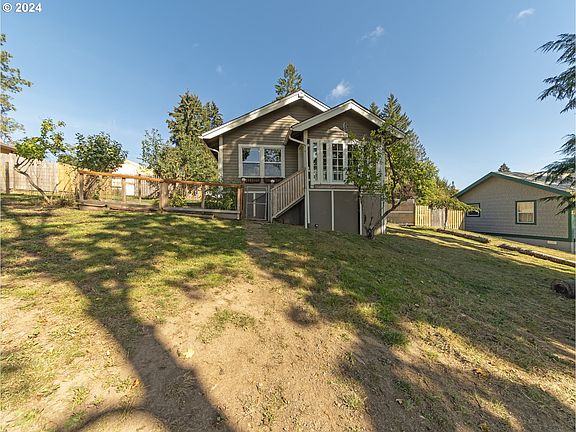 Vernonia classic home on OA Hill with a view! This two bedroom, one bath home features wood floors in the living room with a cozy woodburning stove and an amazing view from the front windows. Kitchen with gas range and open cabinets, ready for your finishing touches. Laundry room with natural gas hook up for dryer. Both bedrooms are equally sized with double closets and wood floors and a full bath between. Pull down ladder attic access in the hallway. An enclosed front porch adds extra room that is sheltered from the elements and leads down to a fenced garden area. The home sits on an oversized lot with ample room in the yard to continue the garden, landscaping and fencing. A covered back patio with firepit for outside entertaining. Plenty of room to park vehicles on the graveled driveway, and room to add a shed or enjoy more yard. Not in the flood plain. Close to Vernonia Fire Department, Pioneer Museum and K-12 schools. Short distance to Vernonia Lake, Banks-Vernonia Linear Trails and downtown Vernonia with local restaurants, stores and services. Come enjoy small town living today!