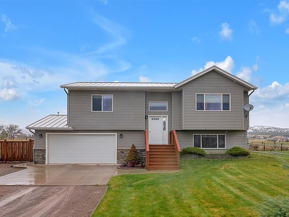 You have to see this home at the end of a country road with an amazing shop in Helena's North Valley! The 4-bedroom, 2-bathroom home has 2,027 sqft of living space on a 1-acre with the back half fenced, an outdoor kitchen & a big chicken coop. This place is a full package property that also has enough garage space for at least 8 cars and a place to park the toys! The house has many recent upgrades, including updated flooring, fresh paint, and new appliances that were installed in 2022. System updates include central air conditioning and a radon mitigation system. The steel roof on the house was installed in 2015, and the steel roof on the shop was installed in 2022. Don't miss out on the opportunity to call this place home. This well-maintained property offers so much! Outside, the living area is extended by a back deck right off the kitchen for easy grilling and also has a big covered patio with an outdoor kitchen. The patio is decked out with a tongue and groove ceiling with lights and a fan, and has cinder block walls for privacy and protection from the elements. Prepare your meals outdoors with lots of counter space, a built-in fireplace, and porcelain egg BBQ. The fenced backyard has lots of trees, bushes, and flowers and includes a nice-sized chicken coop, too. Landscaped rock surrounds the house, ensuring low-maintenance beauty, while underground sprinklers keep the trees and shrubs thriving throughout the seasons.