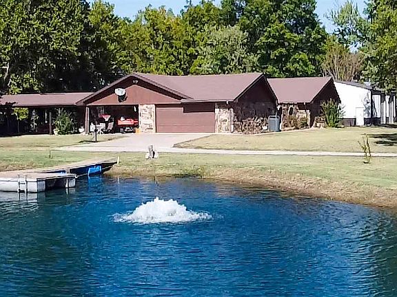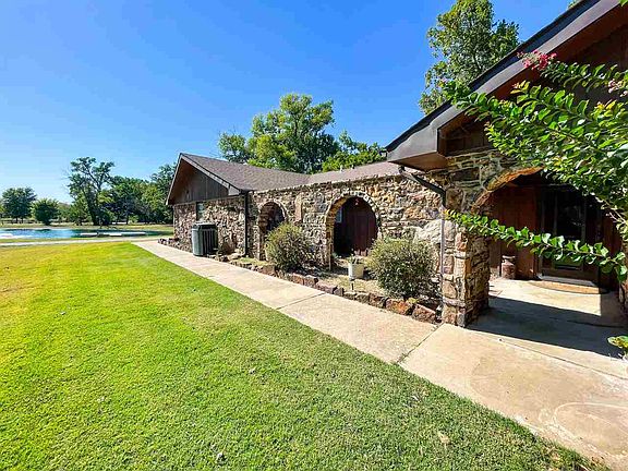 MUST SEE This OUTDOORMAN'S property.... Included in this parcel is a 1/2-acre heart shaped pond, 40x60 Shop 2358 square foot Rock Home with interior Spanish curved archways with abundance of windows for the river-view. Walk out your fenced yard into a LONG-concreted patio with Access and Sitting area for Fishing or just to enjoy the Arkansas River view. This Property is located in Osage county Southwest of Ponca city. Outside city limits and a Park like setting on 3.7 acres of land.