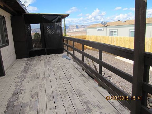 1983 Champion has two bedrooms, two bathrooms, living room, kitchen, office area and a sleeping loft too. The large deck has wonderful views of Lake Powell, Lone Rock and the Kapairowits and Paria Plateaus. 180 DEGREES OF SUNSET VIEWS. It has a fenced yard as well as a covered carport. Stop by and take a tour.