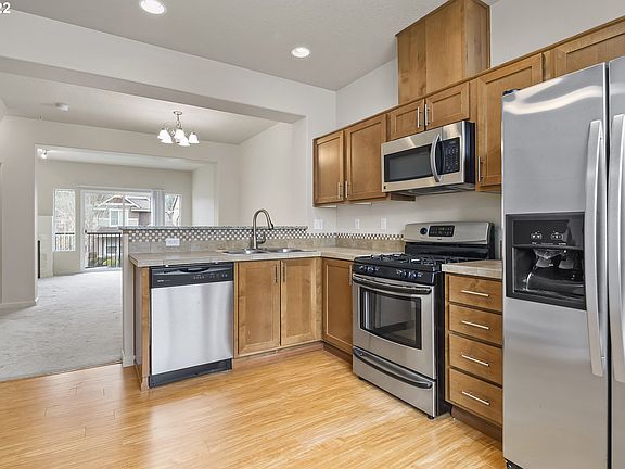 Well cared for, low maintenance townhome style condo. Features a large living room with gas fireplace, main level balcony off the living room, & lovely kitchen w/ gas range, stainless steel appliances, and eating bar. Extra deep, 2 car tandem garage with additional space for storage. Convenient location near Intel, Streets of Tanasbourne, shopping, transit, and Hwy 26.