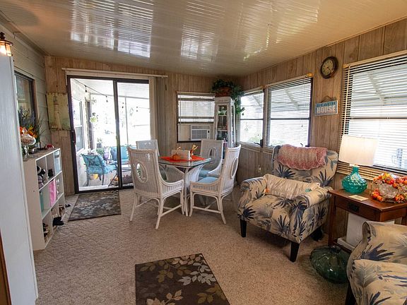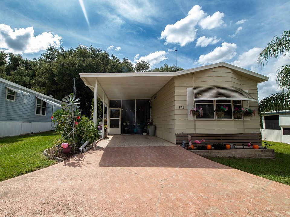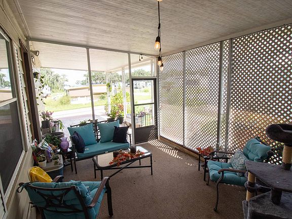 RELOCATING!!!!. New screened porch and dishwasher. Discover serene 55+ living at 352 Oak Harbor CMP, nestled in the peaceful Oak Harbor RV Village in Haines City, FL. This charming, single-wide manufactured home offers a spacious layout with 2 bedrooms and 2 full bathrooms, each inviting you to claim your personal retreat. With 976 sqft of interior space, PLUS the home features a delightful sunroom and a bonus "man-cave," perfect for hobbies or a cozy den. The residence stands out with an array of amenities in a gated community environment. Enjoy a relaxed afternoon fishing from private docks on the 1,000-acre Lake Lowery or explore the lake further with a boat ramp available for your use. The community also boasts two recreation buildings where neighbors gather for social activities, ample opportunities for shuffleboard, horseshoes, and more. With billiards and a well-stocked library, every day brings a new adventure. A POSSIBLITY COMING TO THE COMMUNITY...A SWIMMING POOL! 352 Oak Harbor CMP offers not just a home but a lifestyle. The property is surrounded by verdant nature, providing a backdrop of tranquility and beauty. The additional sunroom and "man-cave" attached to the property ensure that there is plenty of room for relaxation and personal pursuits. This home is perfectly located for those wishing to occasionally venture out, situated conveniently between Orlando and Tampa. Whether you're in the mood for theme parks, shopping, or dining, all are easily accessible. Offered at a monthly lot rent of $666 which includes water, sewer, and trash, this home comes with the promise of a carefree lifestyle in a community that caters specifically to the needs and comforts of its residents.There is also a $22 a month fire tax. Welcome to your new haven at Oak Harbor, where every day feels like a tranquil getaway. OUT OF TOWN!?!? NO WORRIES, WE CAN DO VIRTUAL SHOWINGS AND WE ARE ABLE TO DO PAPERWORK REMOTELY. FEEL FREE TO CALL, TEXT, OR EMAIL ME. I LOOK FORWARD TO BEING YOUR RAY OF SUNSHINE AND HELPING YOU CALL YOUR NEW HOUSE A HOME! All listing information is deemed reliable but not guaranteed and should be independently verified through personal inspection by appropriate professionals. Our company does not and cannot guarantee or warrant the accuracy of this information or the condition of this property. Measurements are approximate. The buyer assumes full responsibility for obtaining all current rates of lot rent, fees, and pass-on costs. Additionally, the buyer is responsible for obtaining all rules, regulations, pet policies, etc., associated with the community, park, or home from the community/park manager. Our company is not responsible for quoting said fees or policies. Financing is available through 3rd party lenders. Please contact the sales agent for additional information