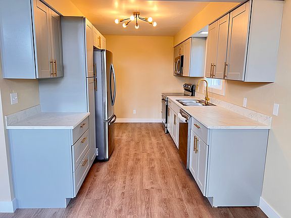 4 bedroom, 2 bathroom home with your own fenced yard and attached single car garage. Fenced backyard for each side. Completely remodeled in 2024. New kitchen, bathrooms, flooring, windows, light fixtures, paint, etc. This home is part of a side by side duplex. The only shared wall is on the garage. Comes with a washer and dryer and all appliances. Pets subject to approval. Owner pays for water and garbage. Renter is responsible for electric and internet/cable (if they want internet/cable). No smoking allowed. Pets allowed per owners approval.