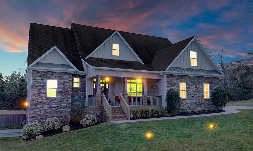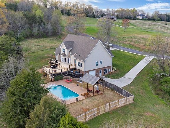 A surprising find! 3,500 square feet of living space set on a 1+ acre lot, with room to grow! Full unfinished walk-out basement and unfinished attic space that could be an awesome media or game room. Spend a few minutes on the front porch swing and enjoy the beautiful view in the Mountain Meadows subdivision. Enter through the custom craftsman front door into the two story entry hall. To the left is the powder room and to the right, Beadboard paneling adorns the dining room. The main living area boasts 18ft ceilings (the other rooms are 10ft ceilings) and a massive stacked stone fireplace with gas log insert. The open eat-in kitchen includes a 5 x 7 granite island, knotty cherry cabinets, a six-burner stainless Jenn-Air gas cooktop set in its own arched showcase with a pot-filler, double stainless steel Jenn-Air wall ovens, stand alone stainless Kitchenaid ice-maker, Kitchenaid stainless steel dishwasher and a Whirlpool stainless steel french door refrigerator. The kitchen includes a Keeping Room with a stacked stone fireplace and gas log inserts. A pocket door connects the kitchen to the laundry/slash mudroom where 4 cubbies keep the family organized. Just off the kitchen is a stairwell down to the full unfinished basement. The downstairs master bedroom just off the family room features a tray ceiling and a door out to the deck. The adjoining Master bath includes a double vanity, jetted tub as well as a custom tile shower with two shower heads, and a separate water closet. The huge master closet finishes out the master suite. A beautiful wood staircase with iron spindles takes you to the 2nd floor which includes 3 large bedrooms and two full baths. Each bedroom includes a walk-in closet, and the largest bedroom includes two walk-in closets. From the second floor hallway there is a staircase leading to the attic space which was floored to eventually finish out as a game room. Another short set of stairs in the attic leads to the Art room. This huge, 12ft x 24Ft room includes a closet and a window. It could easily become a 5th bedroom! There are hardwood floors throughout the house, except in each of the full bathrooms where you will find tile floors. Extra large custom crown molding and extra large baseboards create a beautiful finished look. Every room has been painted a soft pale gray and the custom moldings are a creamy white. All of the hardware fixtures are an antiqued brass including the drawer pulls, light fixtures, door knobs and hinges. Outside on the 1.06 acre lot you will find a 28 x 30 ft deck leading down to 16 x 32 inground saltwater pool. The pool area features a portico with an outdoor living area. There is a concrete driveway leading to the 2 car garage, with sidewalks to the front door and side entry. There is also a concrete driveway to the basement area, which includes a garage door, a walk-thru door and window. The basement has poured concrete walls and has been plumbed for a bathroom. It is approximately 1700 sq feet, some of which has been sheet rocked.