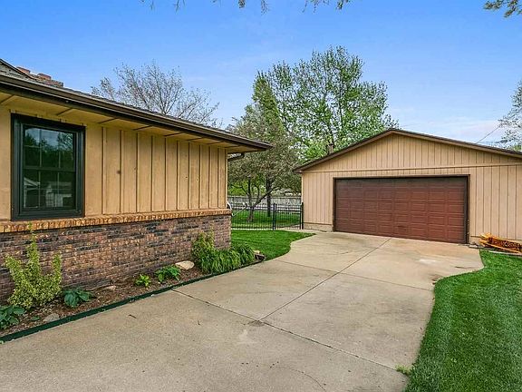 You will love this mechanics dream home featuring 5BRs, 3 baths with a 26x36 heated and cooled detached garage in addition to the 2 car attached with carport! Beautiful wood floors throughout the main living areas and a wood burning fireplace in the living room. Open kitchen with granite countertops, lots of counter space and all appliances remain. Basement features a rec room with fireplace, wet bar, 2 bedrooms and a full bath. Walk out back onto the beautiful wood deck and enjoy your fenced backyard with storage shed. Great landscaping on almost a half acre! Located within close proximity of Rolling Hills Country Club and in the Goddard school district. Very well cared for home shows pride of ownership. No closings until July 30th.