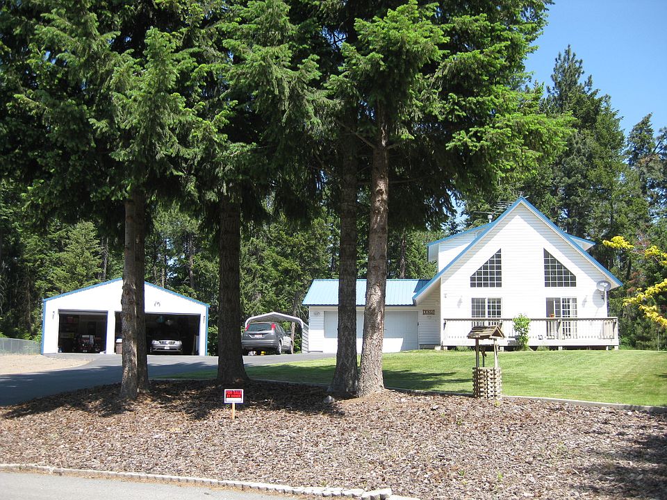 Great location on Harbor Island with Southern exposure. This beautiful 2 bedroom, Den/3rd bedroom, 2 bath home sits on a half acre lot w/a 30x48 shop with 852 sf finished guest quarters, 3 decks, 2 car attached garage, and a 10x22 covered boat storage. Enjoy access to 2 private community beaches w/docks and boat launch.