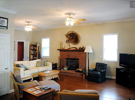 Charming lakefront home on good year round water. 160 ft of shoreline. Swimming area. Dock, Boat Ramp. Delightful property offers much privacy and wonderful view of wooded areas across the cove. It's your own piece of Paradise! Home features hardwoods, high ceilings dowstairs, open floor plan, spacious Master Suite w/lake views, screen porch, deck off Master. Lake fed sprinkler system. 2 year old roof and HVAC.