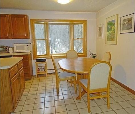Spring Street - beautiful location! Home features spacious great room with open staircase, hardwood floors. Tiled, fully applianced eat in kitchen with lovely bay window overlooking the private 3/4 acre treed lot. Enjoy the birds and garden. Vaulted and beamed family room ceiling with sliders to large deck. Second level features 3 bedrooms with 2 full baths and dressing room. 3 zone gas heating. Updates: young roof /replacement windows/ exterior painted. Walk to Dean Park. Minutes to #290 & #495.