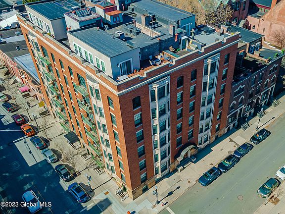 Top floor condo w/ gorgeous balcony overlooking Lark Street & unobstructed city views! Close by July 4th for the best fireworks display! Why rent when you can own. Priced to sell, needs some updating. HW floors, stainless steel appliance, crown molding, & paddle fan. Steps to Hudson-Jay Park, Capitol, Plaza, Lark St, downtown & more. Secure elevator condo building – basement laundry & bike rack. HOA includes: heat, hot water, gas, water, sewer, building insurance, exterior matainence, snow removal, garbage, recycling, and regular common area cleanings. The residential permit parking for Center Square residents provides permits and guest passes, $20 for an annual permit and $5 for an annual guest pass which can be shared with multiple guests. Visit website for VR 3D tour and drone video