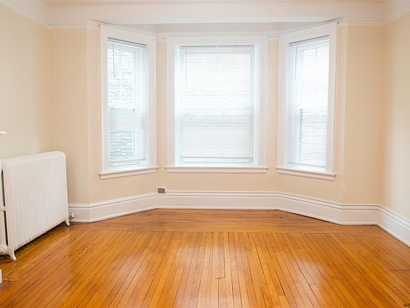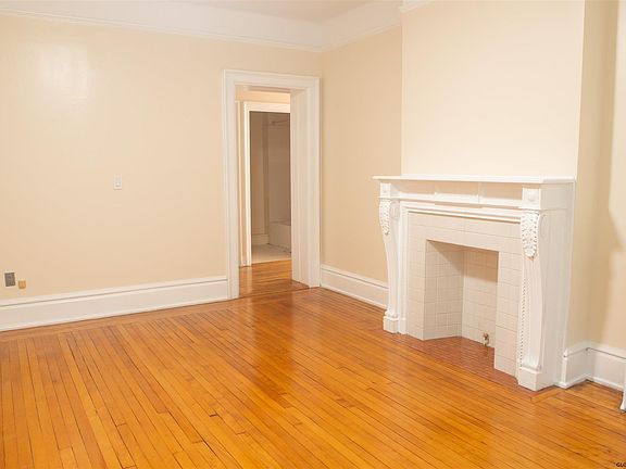A Morris Ryder design, this pre-war six-story brick & stone carved condominium building stands high in the heart of the Center Square/downtown Albany neighborhood. Just steps to the Capital, Washington Park, downtown State & Legislative buildings, Albany Medical Center, galleries, libraries, museums, notable eateries, shops & an array of nightlife. This completely renovated 4th FL unit offers its tenant classic features such as high ceilings, hardwood floors & over-sized windows. The bedroom could also be used as a formal dining room, home office & MORE. Recent renovations include new kitchen/bath, granite, & SS appliances. Plenty of closet space. Freshly painted throughout. Original decorative FP. Coin operated laundry & bike rake located in basement. Rent includes heat & HW. Avail Immd.