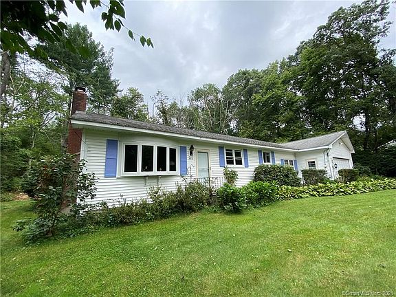 Sunny open ranch! 3-4 bedrooms, oak floors and brick fireplace. Additional finished room behind garage with a separate entrance overlooking back yard and patio would be a great home office or 4th bedroom. First floor laundry. Partially finished lower level with 2 rooms and a basement storage area. Walk up attic/storage space over garage. Open flat lightly wooded yard. Shed. New Septic being installed. Move right in. Minutes to UCONN and/or ESCU. Very convenient location! Walk to Annie Vinton School.