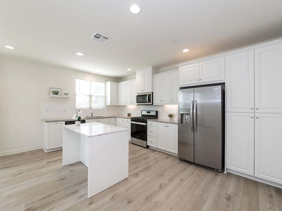 **CONVINIENT LOCATION IN ORANGE COUNTY**NEW HOME BUILT IN 2020**LUXURY 1 BEDROOM & 1.5BATHROOM, 966 sf.**GATED COMMUNITY**DIRECTED ACCESS 1 CAR GARGE WITH 1 RESERVED PARKING**2 STORY TOWNHOME, NO ONE ABOVE OR BELOW**1 COMMON WALL, CORNER UNIT**SOLAR SYSTEM**BRAND NEW REFRAIGEATOR & WASHER/DRYER INCLUDED**RESORT STYLE HOA AMENITIES. Home in this desired neighborhood rarely comes on the market. This turn key unit offers everything you are looking for, you will enjoy a luxury single life or work at home. Located at the next door walking distance mall including Rodeo 39, In-N-out and fitness, a few minutes away Costco, lots of restaurants, and shops, and less than 30 minutes cover Irvine, Cota Mesa, Huntington Beach, Buena Park, most of cities in Orange county. The home features open concept living room and kitchen boast a center island with bar seating, modern stainless steel appliances, high ceiling with recessed lights, a powder room, a large storage under stairs, luxury vinyl plank floor throughout the downstairs, upgraded carpet through the upstairs. The whole upstairs is a spacious bedroom with a Juliet balcony, 1 bathroom, and a separate laundry room, you can see a mountain view far away. Directed access 1 car garage and 1 reserved parking. Specially, this home has a solar system, you will surprise with a very low electricity bill. HOA offers swimming pool and BBQ area, playground, and lots of resting area. Easy access to freeway 22,405, and 5. Very convenient location for shopping and restaurants, beaches. New Refrigerator and Washer & Dryer Included. No Pet allowed. This house has a solar system and it will save a lot of money for electric bills. NO PET, NO SMOKING. $2775 monthly for 1 year lease, possible 6 month lease for $3100 per month, all furnished and included utilities for $3600 per month.