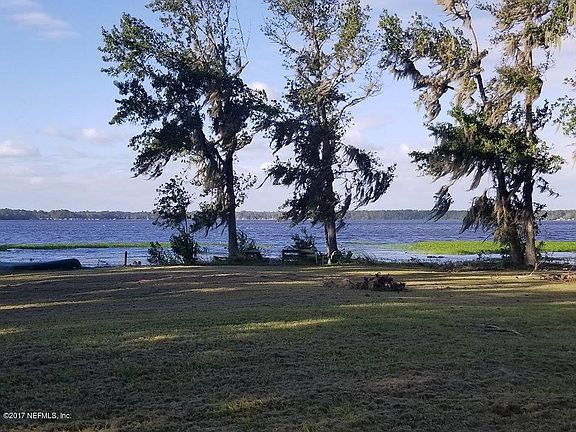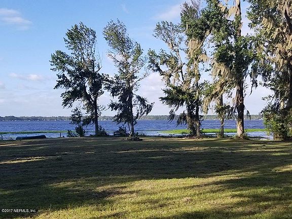 George's Lake waterfront and adorable log home nestled on 8.26 acres! Geroge's Lake is one of the largest lakes in Northeast Florida, great for swimming, boating, fishing yet very quiet in a rural area. Log home is 3 bedroom 2 bath and also has an attached bunk house for extra living space or sleeping quarters , fireplace and screened porch with gorgeous views of George's Lake. 240+ feet of lake frontage. 30'x40' detached garage with 14'x30' lean-to and 2 car carport.Property has a canal on each side of the parcel.