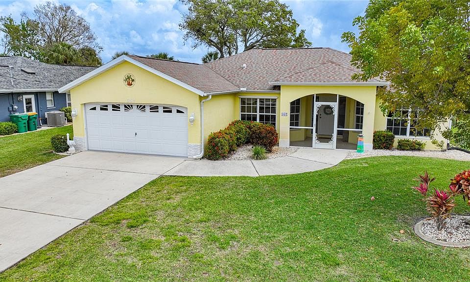 MOVE IN READY home has been well maintained and comes partially furnished. NO HOA, complete with city water and sewer. Located in the popular Section 15 you will feel right at home the minute you walk through the screened front porch. Volume ceilings create a spacious atmosphere; the open floor plan connects the living room, breakfast nook, kitchen, dining room and foyer, all flooded with natural light. The master bath has a separate tub and walk in shower, master bedroom is large enough for a love seat or two recliners. You will enjoy the convenience of the inside laundry room. The kitchen has ample space with solid surface counter tops and plenty of storage in the solid wood cabinets plus a desk and breakfast nook. The property boasts upgrades including new roof, lanai and front porch screens, new washer, dock was upgraded with composite wood flooring. The exterior paint all new in 2022, lanai ceiling 2023, lanai fans 2019. AC and garbage disposal 2021, fence 2023, hot water heater 2018 PLUS hurricane shutters. Step outside to a beautiful lanai and lush backyard. Enjoy morning coffee on the lanai and watch the most amazing sunrises. There is a deck at the canal edge where you can enjoy quiet time reading or watching many pecies of wildlife. The fully fenced backyard gives safety to your little ones and animals. Don’t wait to start living in the Florida dream, schedule a viewing to make this property your home.