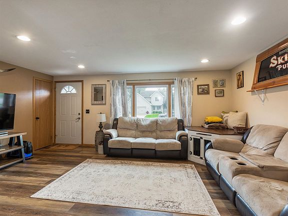 Enjoy the tranquility of your large backyard while lounging on the stamped concrete patio. Newly updated interior with low maintenance luxury plank flooring. The beautiful kitchen is open to the dining and living area making entertaining easy. Spa like bath on main floor and an extra full bath on the lower level. Plenty of space for toys in the oversized garage! Come enjoy quiet village life for yourself.
