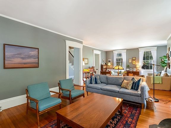 This amazing 1847 Greek Revival is the perfect blend of historic charm & modern amenities. The sprawling living room, ideal for entertaining, offers beautiful, detailed woodwork & a working fireplace. It adjoins a family sized dining room with a fireplace & a floor to ceiling window overlooking a charming garden. A large eat-in kitchen & half bath complete the first level. An elegant sweeping staircase leads to the second level. boasting a huge primary bedroom & adjacent sitting room, each with a fireplace. Two additional bedrooms, one with a beautiful fireplace with exquisite tile detail, a full bath & modest size child's bedroom or office complete the second level. The walk-up attic is available for future expansion. The private backyard is completely fenced in and is perfect for outdoor entertaining. Thiis is an exceptional offering with easy highway access & walking distance to Buttonwood Park & New Bedford's fine restaurants, museums, theaters & the new commuter rail station.