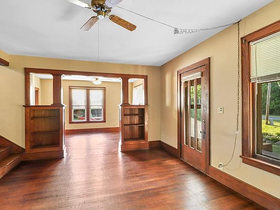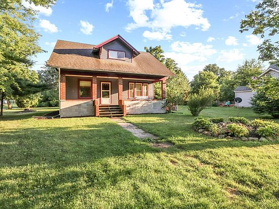 This vintage Cape Cod home is a delight. Home is a Historical Sears Catalog Home! The main floor has your kitchen, laundry room, dining, living , full bath and main bedroom. Solid doors, original vintage hardware, 12 inch floorboards, beautiful large windows, and wood floors throughout! Solid wood Stairs and banister lead to the 2 upstairs bedrooms both with large walk in closets. The built ins are original and the wood accents ae amazing. Relax on the covered porch with a swing in the rural community and enjoy the view. Detached garage with lean to for additional storage. Large corner lot is newly landscaped.