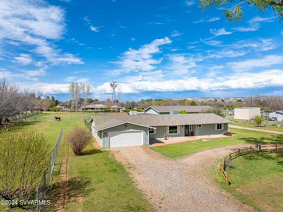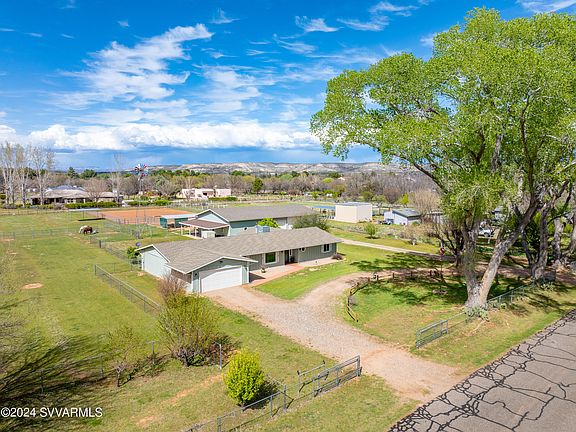Welcome to one of Camp Verde's FINEST, this property truly has it ALL. Let's start with the tastefully upgraded 4 bed 3 bath, 2581 sqft home, along with a lovely guest house, 2400 sqft shop (all insulated) with 4 rollup door, 2 of which are RV doors, great tack room, 3 stall open air barn, grassy turnouts, hay storage, riding arena, flood irrigation, 2 wells, towering shade trees, AND, your very own Windmill. This property needs to be seen to truly appreciate all it has to offer. Come take a look, you certainly will not be disappointed.