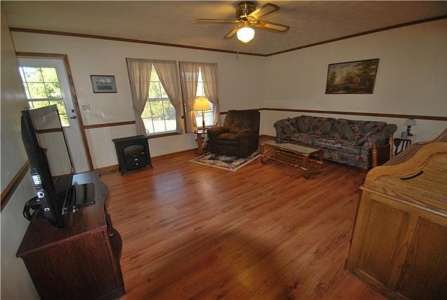 Cute cottage just 10 minutes from Gallatin! Lasting wide vinyl, laminate flooring, new roof, new HVAC system!! Move in ready! Relax on your one acre lot with great full front porch and established evergreen trees. All this, PLUS a garage!