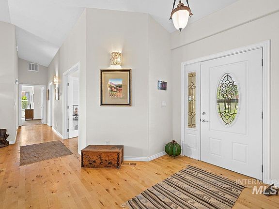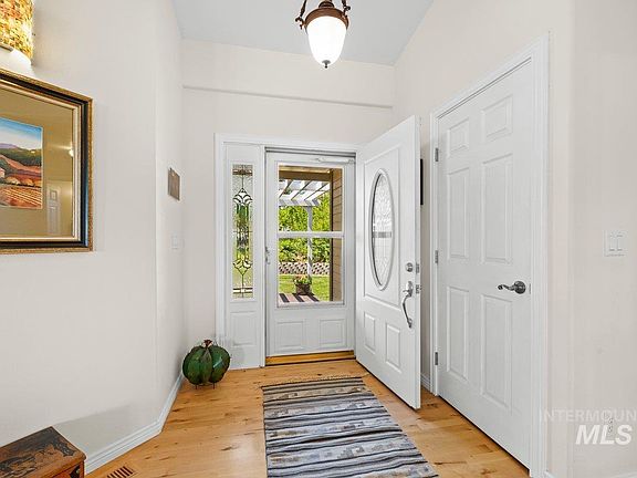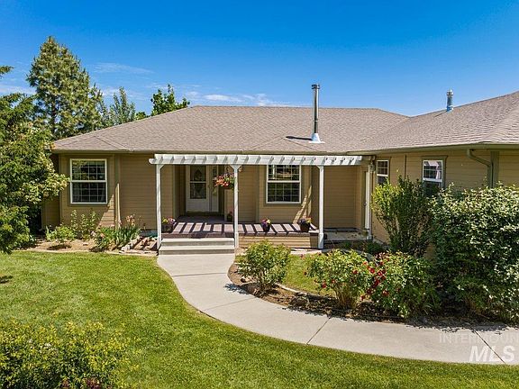 Come home to the perfect, independent Idaho lifestyle. Parklike setting within 45 minutes of Boise, Nampa and Caldwell and yet away from all the hassle of city life. Breathtaking views in every direction. Quality built, open floor plan single level home with custom canning kitchen/sunroom. Northeast facing patio is perfect for summer evenings. Gravity irrigation for fully fenced 5 acre pasture. Additional features include a 3 bay 39 x 32 building with climate control to the shop area, a 30 x 15 custom greenhouse with power and water and a mister system, a 40 x 56 Steel Barn stubbed for plumbing and electrical, 2 corrals, an enclosed grape arbor, a chicken coop, lean-to barn tool shed, covered parking and many more features. See detailed list in the documents section.