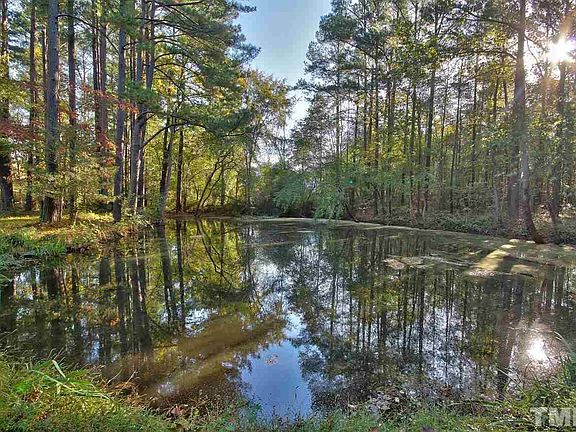 Superb and wonderfully unique property with private pond on 2.96 acres. Private county setting near Wake Forest means lower property taxes. Two raised vegetable beds, rose garden, many blueberry, raspberry, and blackberry bushes near pond. Rear basement entrance could be a separate guest area or teenager's retreat. With 2.96 acres, you have space to build a garage on either end of the house and a pool in the back yard.