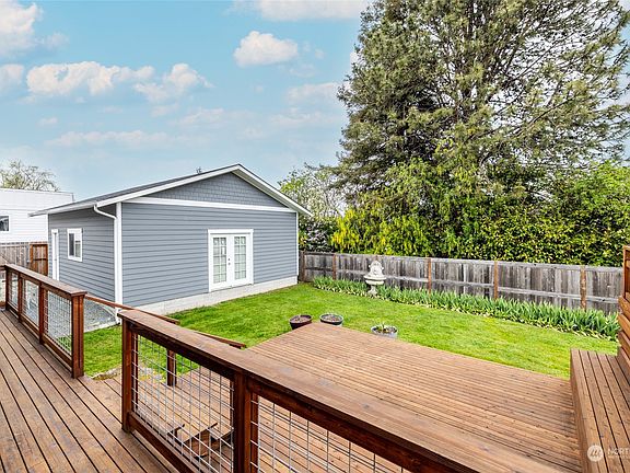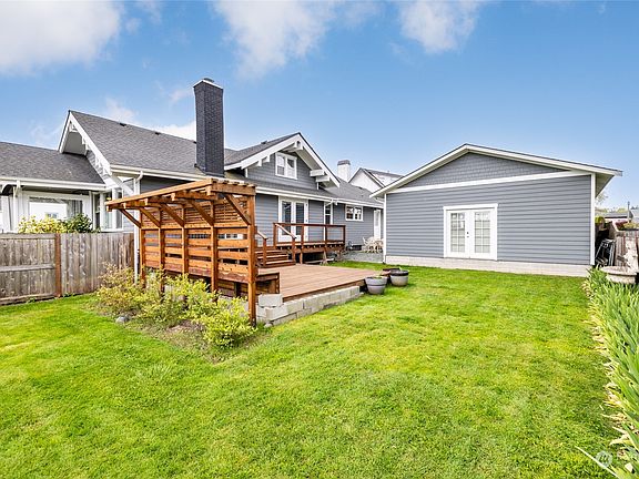 Old-world charm meets modern design! Fully remastered 1900’s craftsman w/ superior detail trim & finish work. Everything you need is on the MAIN FLOOR. 2 bdrms, 2 full bthrms PLUS a large finished BONUS area upstairs w/ a half bthrm. Spacious primary bdrm w/ 3 closets & a 5-piece en-suite. Tile floors, walk-in shower w/tile surround plus a tub & linen nook. Open floor concept. Kitchen w/ shaker cabinets, granite ctps, SS applcs, 5 burner gas cooktop & DBL oven. Dining area w/ 9ft coffered ceilings. Living rm w/ cozy gas fireplace & tons of natural light. Leaded glass French doors open to the custom-built deck & fully fenced yard. Oversized 2 car garage/shop & RV/boat parking. NO HOA. Cul-de-sac, easy access to HWY 20 & downtown Anacortes.