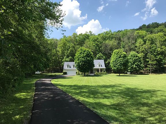 Beautiful one owner Cape Cod in EXCELLENT CONDTION out in the country on 4.7 acres BORDERING NATIONAL FOREST! If you're looking for a well-cared for home w/ a great yard for children & pets this is it! The 1st floor features a good-sized living room, a beautiful kitchen w/ Corian countertops, island w/ seating & appliances, a dining area, a gorgeous sunroom w/ vaulted ceiling, a master bedroom & master bath w/ separate tub & shower, a 1/2 bath & laundry area. Upstairs find a cozy den, 2 bedrooms & 1 full bath. Other amenities include a 2 car attach. garage, front porch, large level yard, mature landscaping, long paved driveway, hardwood, tile & carpeted flooring, heat pump & pretty mountain views. Great hunting in your backyard w/ National Forest steps away! A rare find!