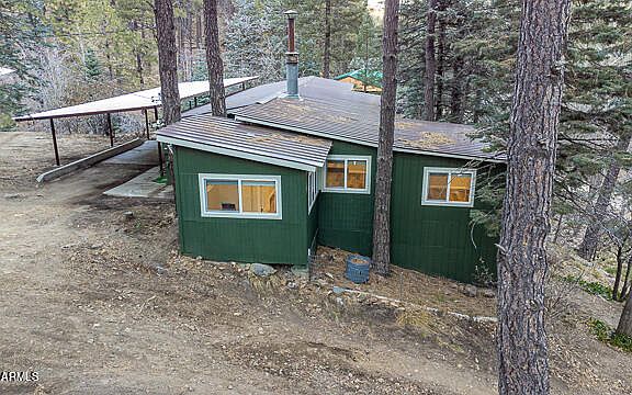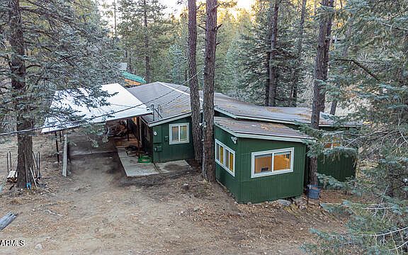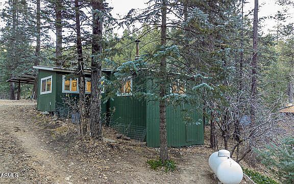 This spectacular cabin backs up into the Prescott National Forest with endless hiking and views. Standing at 1,137 sqft, this 2 bed plus den/study, & 1 bath/laundry combo is completely rehabbed. Cabin sits on just a little over an acre of mostly usable land, giving you the opportunity for a 2nd cabin with the right vision or just use it as a workshop (approx. 300 sqft). Room to fit 5 or more RVs & covered parking for 4 vehicles! Freshly painted inside & out, new electrical, new metal roofs on all structures, new 100% waterproof flooring, new windows, completely redone kitchen with white shaker cabinets & quarts countertops, new microwave, oven range, disposal, & all new faucets throughout. Don't wait too long! This unique property won't wait too long for her new owner!
