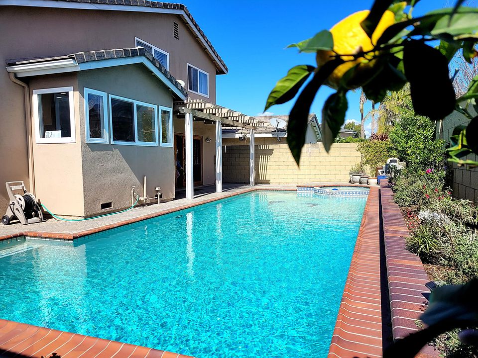 This lovely 4 bedroom 3 bath Pool home is ready for some new memories. This home boast thoughtful craftmanship throughout. Vaulted Ceilings in the formal living room and dining Room. Large eat in kitchen with double ovens, fridge, dishwasher, and a pool view to help make washing those dishes a little more enjoyable. Sunken Family room with Wet bar opens up to the back yard complete with Pool, spa, small covered patio and fruit trees. Downstairs guest area includes 1 bedroom and full bath. Upstairs Master suite with walk in closet and Balcony plus 2 additional bedrooms both with walk in closets and share a beautifully updated full bath. Indoor Laundry room with lockable dog door onto fenced dog run. 2 car garage with loads of storage and work space. Great corner cul-de-sac location in Seal Beach close to 405, 22, 605 fwys., A top notch school district, and walking distance to Almond Park playground and basket ball courts. *Open House style Showing* Sunday 3/6/22 11-1pm** * Applications available through email contact. Owner pays for Water, Trash, Landscape, and Pool Service. Tenant Pays, Gas, Electric, Internet/Phone. We love your pets too! Cats and Dogs welcome with additional Security deposit of $300 per pet. (Insurance may be required for certain breeds of dogs) 1 Year Lease with option to renew *Freeway construction scheduled to be completed Spring 2022.