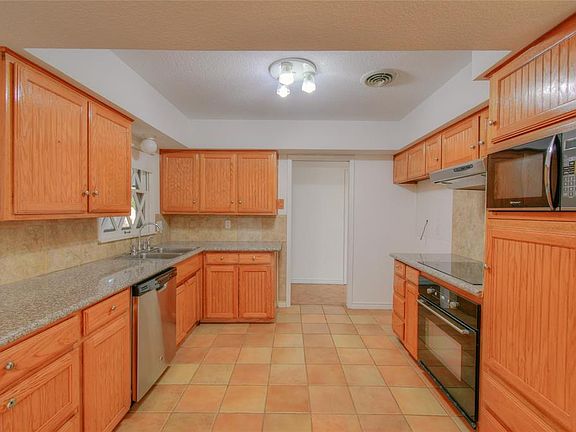 Quiet established street in Western Hills Addition. Spacious 3 bedrooms, 2 bath, and 2 car garage. Updated kitchen with custom cabinets and granite countertops. Large living room and family room highlighted with a brick wood burning fireplace. Nice finished out garage that can make a great man cave. Large 2 car carport for extra covered parking. Light and bright interior décor that has been freshly painted. Roof about 7 years old and HVAC is around 3 years old. Exterior paint just completed. Fenced back yard with large storage shed. Large concrete patio off sunroom.