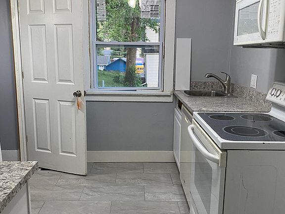 Newly refinished home with a nice big yard. New windows, furnace and central air. Upgraded kitchen and bath. The basement has a bonus room plus storage. Wonderful front porch. Driveway behind house. Utilities not included.