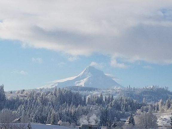 Comfortable one story home in a great new neighborhood. Nice layout with vaulted ceilings in the open kitchen/dining/living room area. View of Mt. Hood from the home and spacious back yard that backs up to a community park. All appliances are included, and the A/C is in.