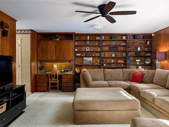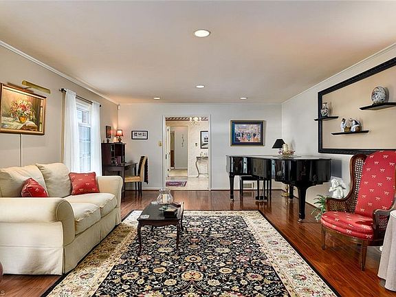 Wow wow wow! This mid-century style ranch is the perfect blend of charm and comfort. Beautiful home with brand new roof (September 2023), and immaculately maintained in and out. Enjoy the oversized garage that can house 4 cars, two deep and two side by side, with space to spare! Spacious rooms throughout. Enjoy the stunning curved brick walkway that leads up to the double door front entrance. The foyer leads beautifully into the formal great room and oversized dining room - perfect for large gatherings and entertaining. The back yard is a paradise with large koi pond, multiple patio areas, all encased in a fence that overlooks the pasture behind, with private trees and stunning landscaping. The basement would make another living quarters with living room, two rooms with closets, and a full bath. So much storage throughout! the huge attic has flooring for additional storage