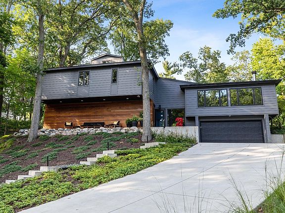 Perched high on the dune overlooking Lake Michigan in the desirable Duneland Beach sits a remarkable home with a modern flare. This home is a sophisticated retreat for those seeking an incomparable lifestyle on a secluded lot that is nestled in the tree tops and surrounded by landscape perfection. No matter where you lounge or play, luxury can be seen in the details and is obvious throughout this one of a kind home. Entertain seamlessly in the open concept main floor and enjoy the fireplace in the living room. The kitchen features custom cabinets and high end appliances with multiple sliding doors that lead outside. There is also plenty of space for everyone with 5 bedrooms, a fun loft to play in, and a mud room for all your extras. Head outside to the amazing outdoor space and continue the party on the large multi-level decks. No finishes were spared to create this ultimate getaway home.