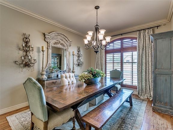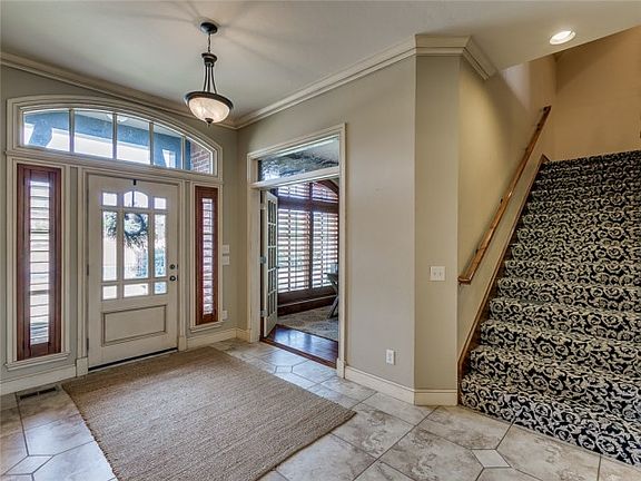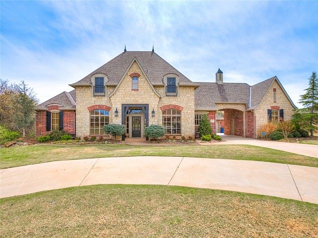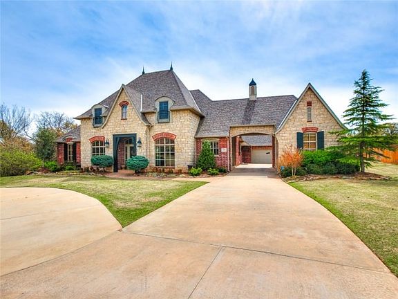 Beautiful brick and stone home in sought after northeast Edmond addition. The home has a high impact roof, plantation shutters, black-out shades in the master, storm shelter in the garage and is adjacent to the greenbelt. The backyard extends beyond the wrought iron fence. Large patio that's perfect for outdoor entertaining. Backyard is ample sized for a pool, however there is a neighborhood pool. This is a true MIP, with two bedrooms down and two bedrooms up. There's a powder room for downstairs as well as a powder room upstairs. Home features two large living areas. The main living features a beautiful stone fireplace and a wall of windows looking out on the backyard. The study has wood floors, tile is featured in the walkways, kitchen, casual dining & mud room. All the rooms is this home are great sized and every bedroom has a walk in closet. You'll love this home and it's floor plan. Upstairs bdrms share a jack-n-jill bath. Open Sunday 2-4, April 10