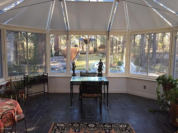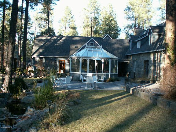 This one of a kind ''Stonehouse'' is on the National Register of Historic Places. The original home with 18'' granite stone walls was a saloon that served the stage line from Prescott to the Bradshaw Mountains. The property backs to the National Forest on two sides. Extensive renovations and additions in the late 90's, including an imported English Conservatory that overlooks the stream water feature. Stainless Steel counter tops and appliances (Viking and Sub-zero) in the kitchen. The kitchen also boasts vaulted beamed ceilings with a chandelier from the original Goldwater building. In-floor heat under the Vermont Slate on the first floor. Perimeter wrought iron fence and gate. Only 10 minutes to downtown Prescott.