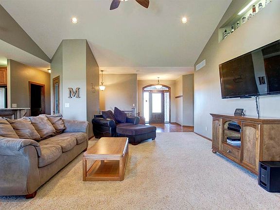 No need to look any further. This residence has it all and you will agree. Home nestled on a quiet 1 acre lot that includes beautiful landscaping fenced backyard. 24x12 outbuilding with electricity, 20x13 covered deck and communal system with 1 inch line and 2 inch to central box and includes automatic drain value throughout system. Also there is a RV parking pad that has its own electric hookup and septic drain. This home was constructed with 2x6 walls with lots of insulation. Main floor boast 18 foot ceilings, open kitchen with granite countertops, huge master suite with walk-in shower and separate walk-in closets. View-out/walk-out basement features concrete storm room, tons of storage, and a spacious bedroom and rec room for entertaining. The oversized garage has four doors, sheetrocked, tall ceilings, insulated doors, and can accommodate full size dually pickup truck. You can't build a better home than this one. Call now!