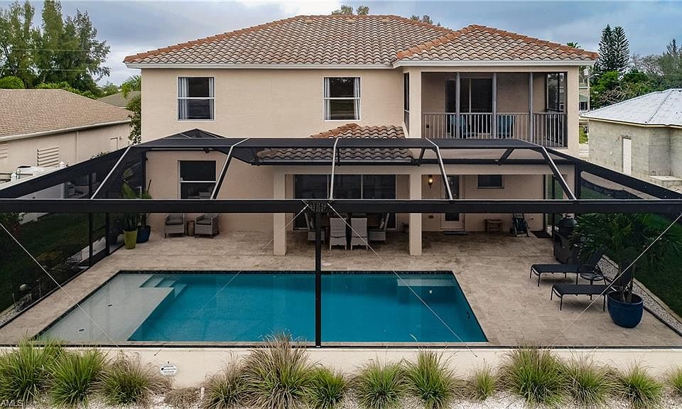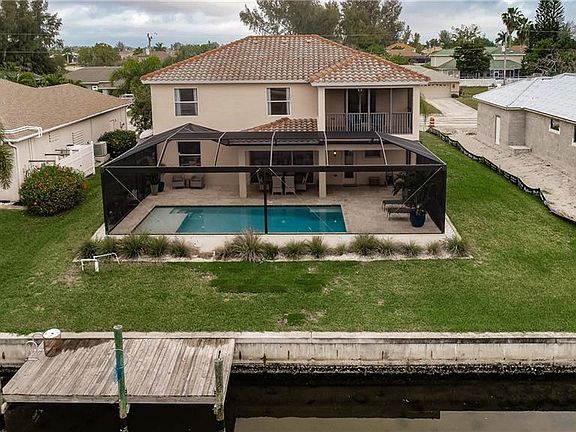 Gulf Access Pool Home: 20 min boat ride to Matlacha Bridge! This four bedroom, three bath, two story home offers over 2,900 square foot of living space. Plenty of room with extra den, formal dining and upstairs loft. This home provides a Southern exposure backyard that features a new salt water pool created by Artesian Pools (2018). LED lighting in the bubblers, large sun shelf and beautiful travertine tile provide a perfect setting to enjoy the sunshine! The master suite includes a private balcony overlooking Ceitus Lake, his and hers walk in closets, five fixture bathroom and French doors. The kitchen features a snack bar, granite counter tops & copious cabinetry! Notable details include: Updated master shower, whole house RO system (2019), CounterStrike Security System (2019), AC unit (2018). Fish off your private dock or simply enjoy the manatees in this spacious waterfront home! Be sure to check out the virtual showing with 360 images!!!
