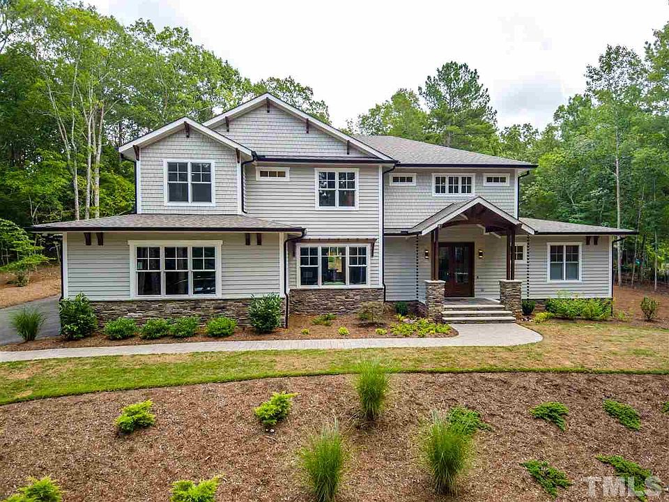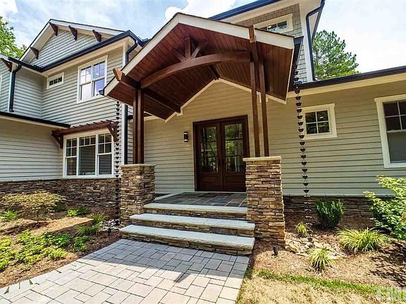 Builder's personal custom home on over 1 acre in sought after neighborhood. Backs to 8 acres of HOA owned woods & trails. Features include: cedar & stone siding, spray foam insulation, sealed crawl, Google home connects thermostats, lights, GDO. Irrigation, built in grill, heated floors in MBA, EZ Breeze window on screened porch, hardwoods through-out, 6 burner gas range, granite & quartz tops, alarm, invisible dog fence. All appliances convey. Too much to list! 10 minutes to UNC hospital. POOL READY!