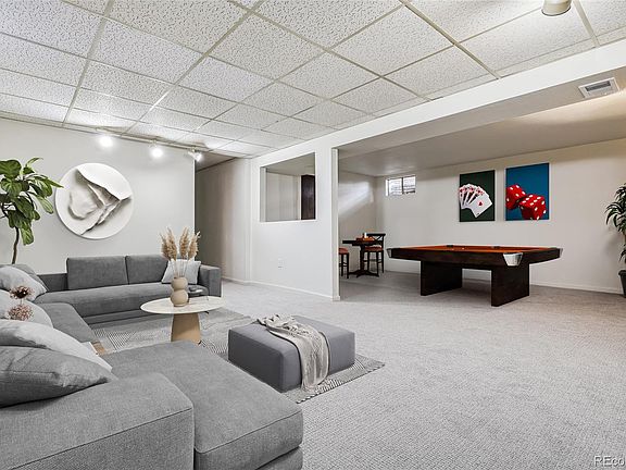 Rare opportunity to live in a ranch-style home with gorgeous mountain views, including views of Pikes Peak! As you enter, you are greeted by the living room featuring hardwood flooring. The large eat-in kitchen provides access to the oversized backyard, patio, and deck with new decking. The primary bedroom has been expanded and features 4 large sliding closets. An additional bedroom and updated full bath are also conveniently located on the main level. The full finished basement provides one more bedroom, spacious additional living area/recreation room, and the laundry area. Step outside to relax in the large backyard, which has four sheds for your use. Recent updates include new interior paint, new carpet, new lighting, updated bathrooms, new decking, and updated electrical. This home is ready for you to move in!